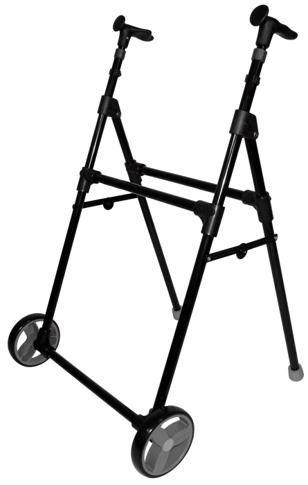 · Come accessorio, si possono aggiungere ruote posteriori con freno a pressione. Queste ruote aggiungono mobilità e, quando l'utente si appoggia sul deambulatore, lo frenano, garantendo la massima sicurezza.